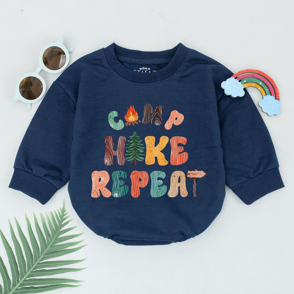 Camp Hike Repeat Romper Retro Camping Baby Romper Adventure Baby Bodysuit Baby Shower Gift Pregnancy