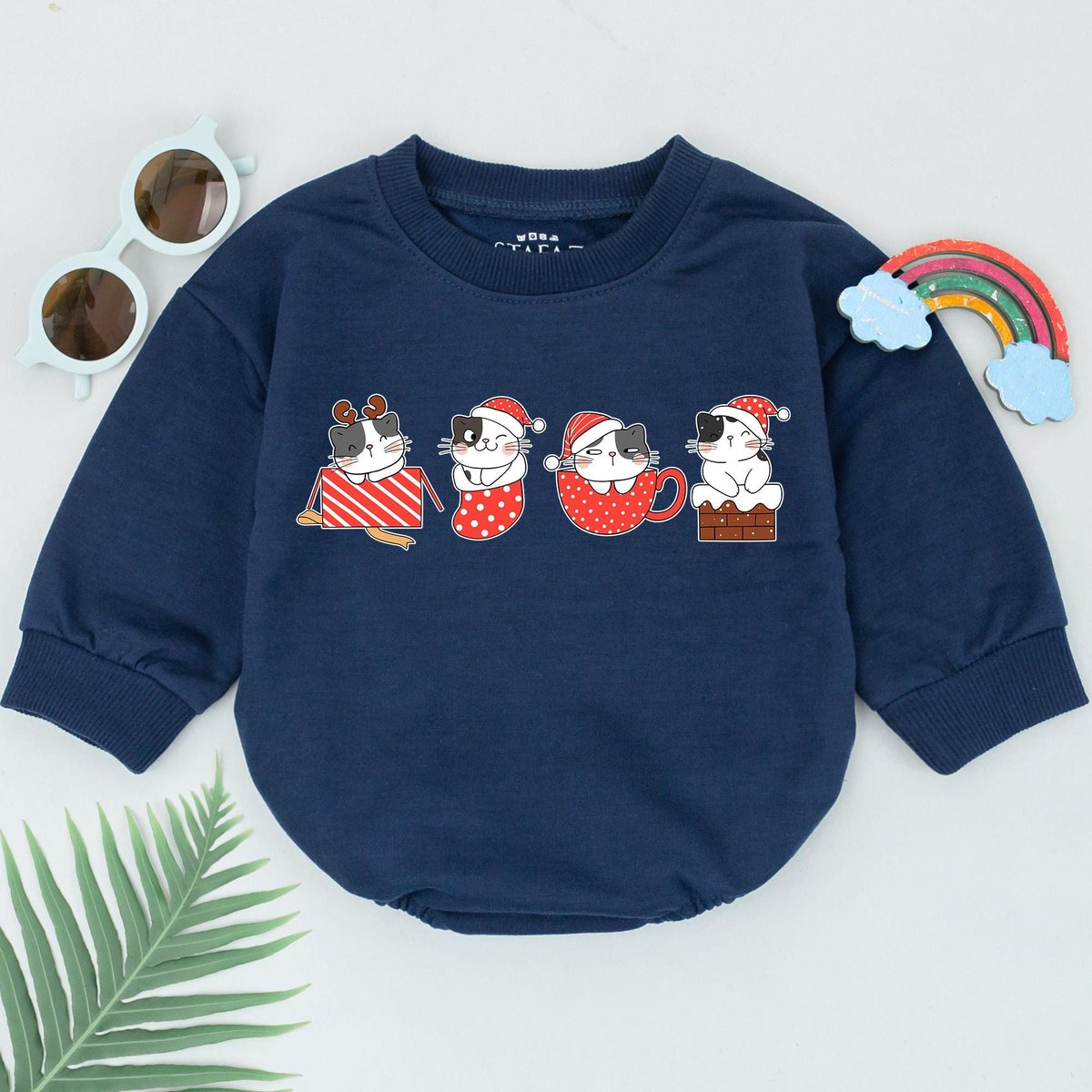 Cat Christmas Romper 1st Christmas Baby Romper Baby Shower Gift Christmas Outfits Newborn for Girl B