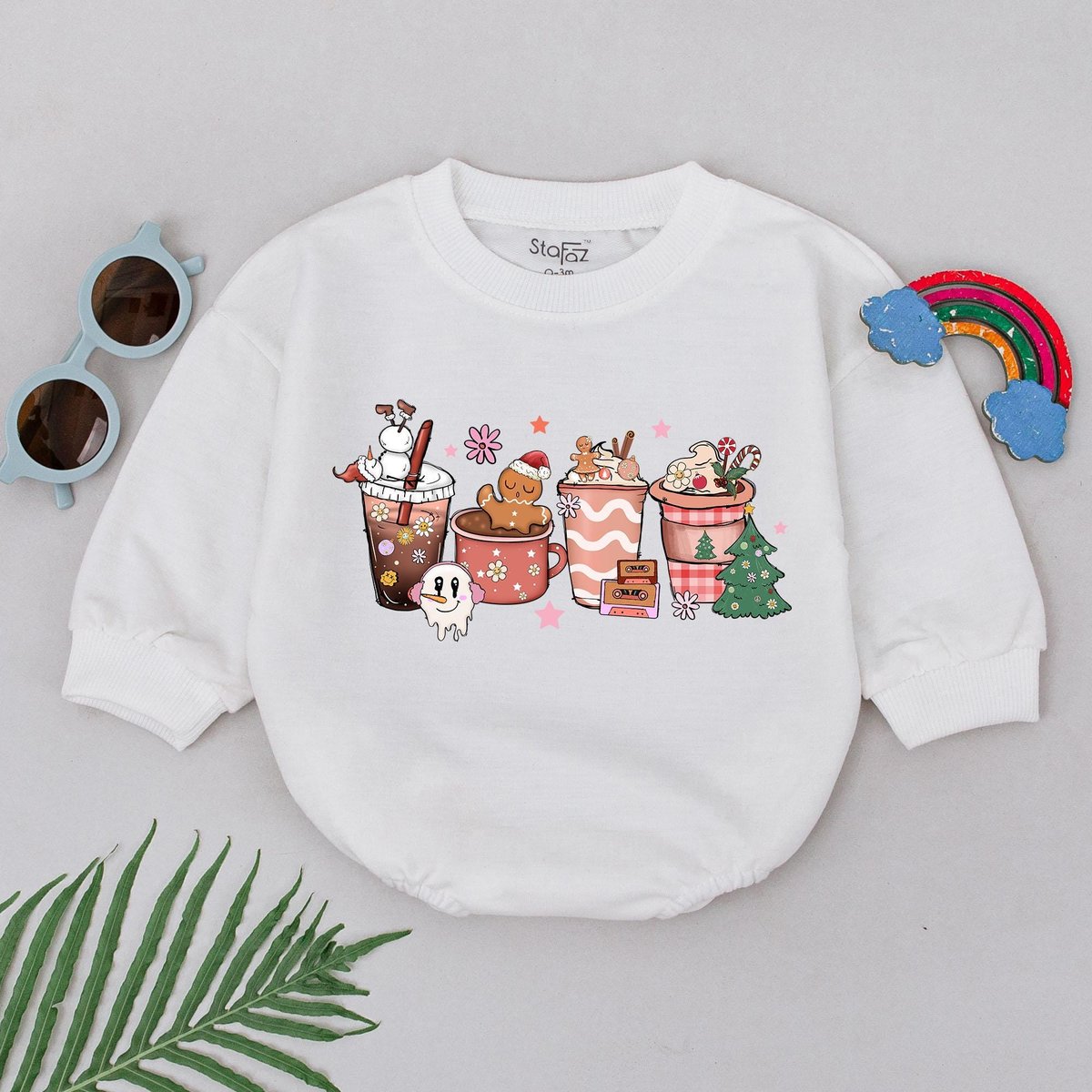 Christmas Coffee Cups Romper 1st Christmas Romper Baby Shower Gift Christmas Drink Outfits Newborn f
