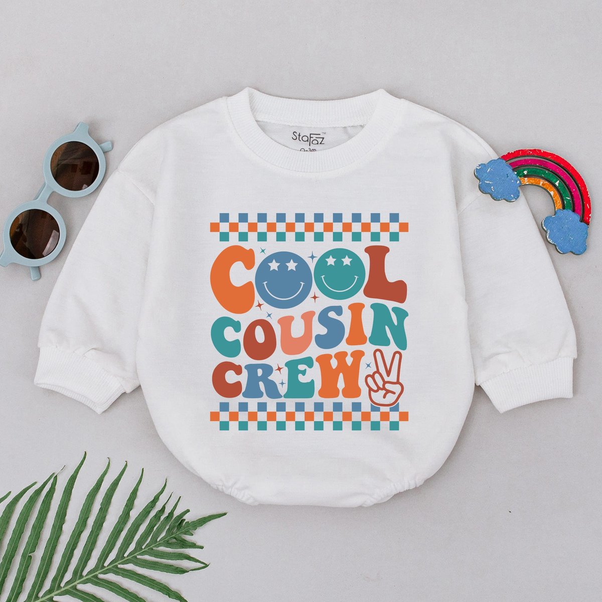 Cool Cousins Club Romper Cousin Crew Romper Boho Retro Kid Outfit Natural Infant Baby Shower Gift Ge