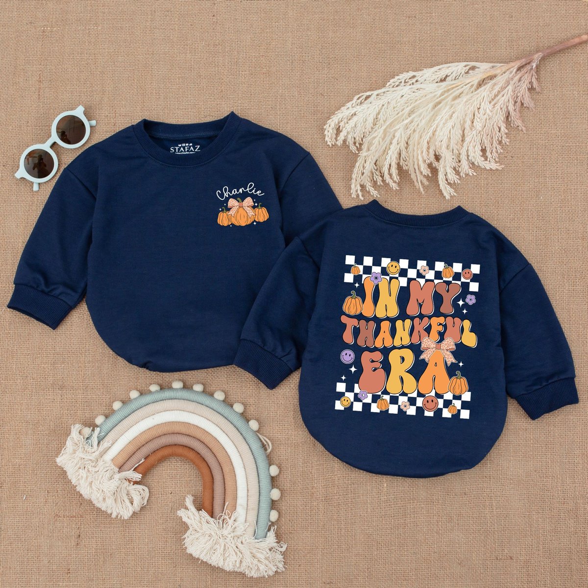 In My Thankful Era Personalized 1st Thanksgiving Turkey Baby Outfit Pumpkin Bubble Romper Baby Thank 176