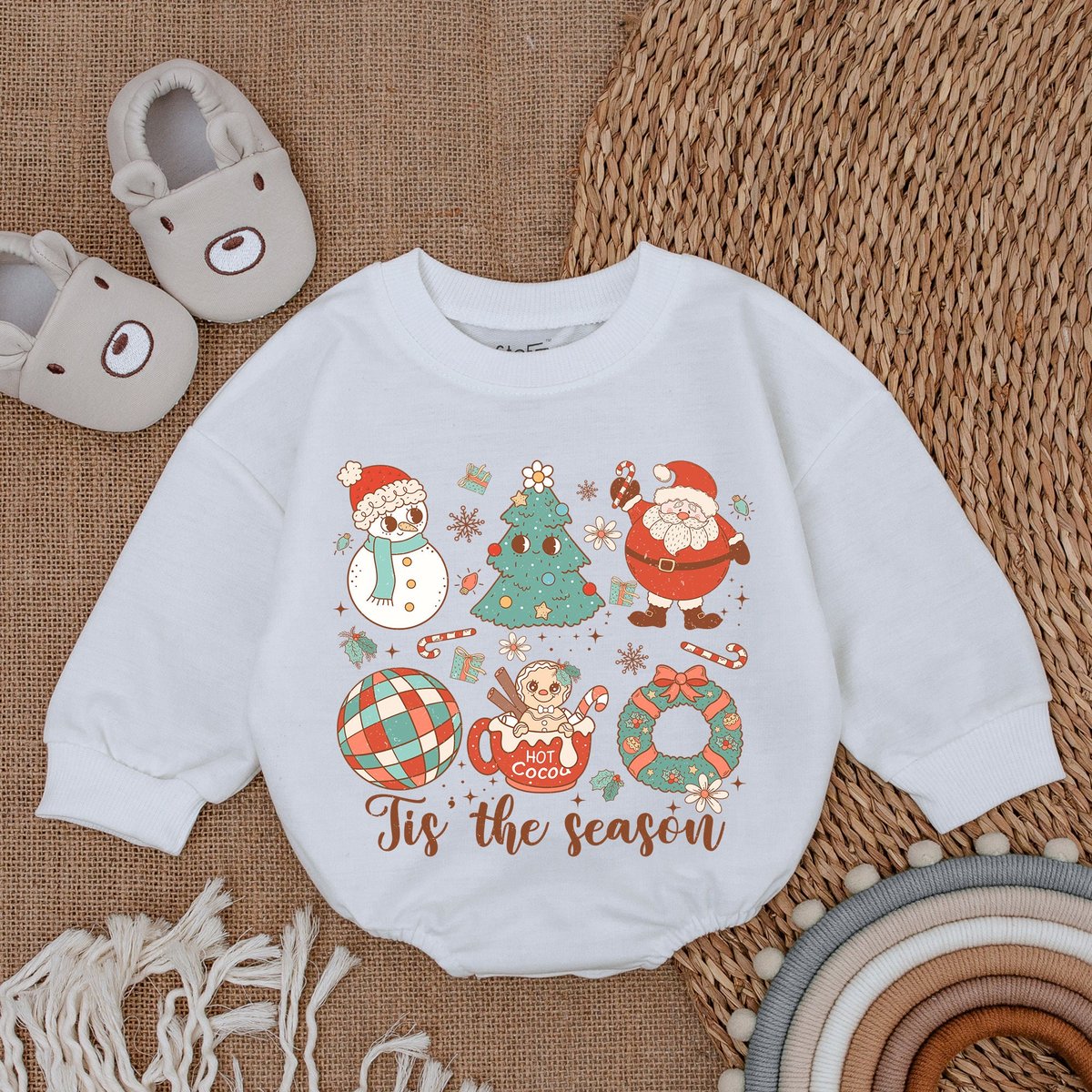 Tis The Season Christmas baby Outfit Baby Cozy Clothes Santa baby Romper Retro Santa OutfitSanta