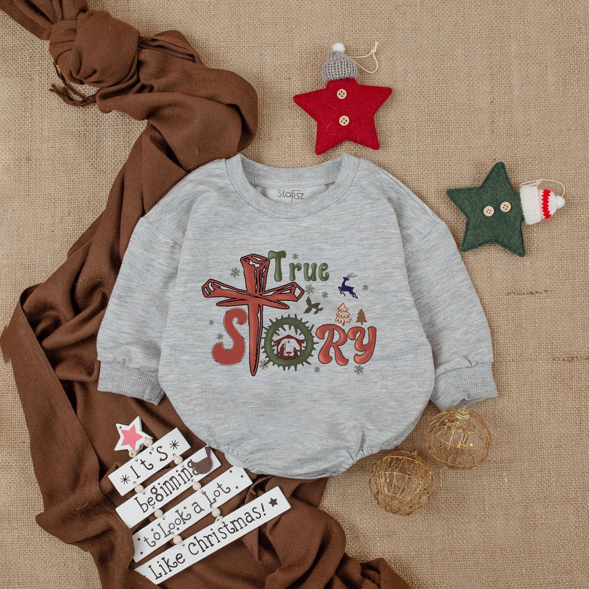 True Story Romper My First Christmas Christmas Bodysuit Baby Christmas Outfit Oversized Long Sleeve