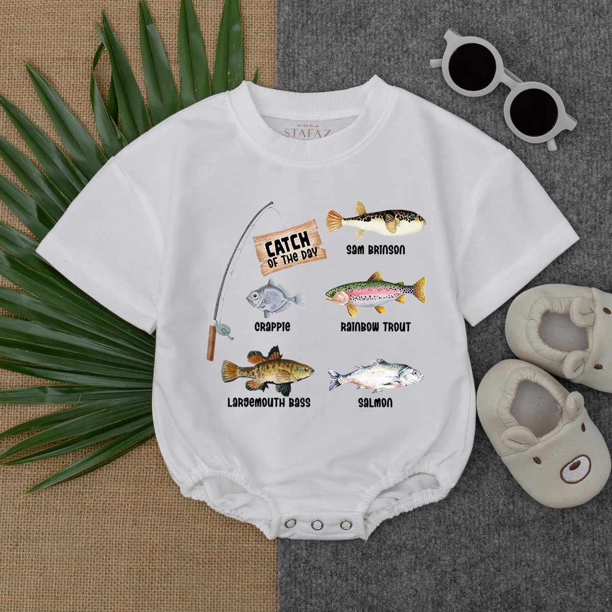 Catch Of The Day Baby T shirt Bubble Romper Funny Fishing Baby Outfit Daddy Fishing Partner Summer B 429