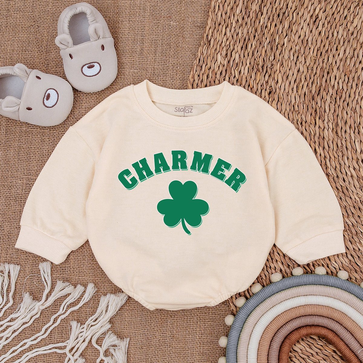 Charmer Baby Romper St Patrick’s Day Bodysuit Natural Irish Baby Outfit Light Mauve Baby Romp