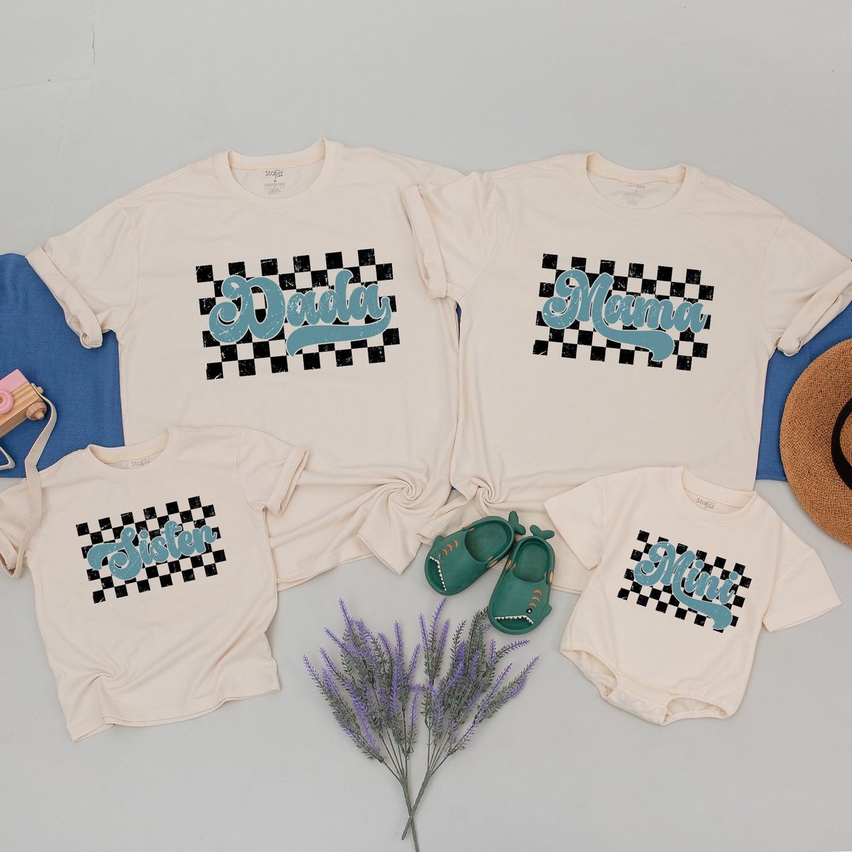 Checkered Mama Dad Mini Trendy Family Matching T shirt Checkered Retro Mama Dad Mini Family Tee Chec 170