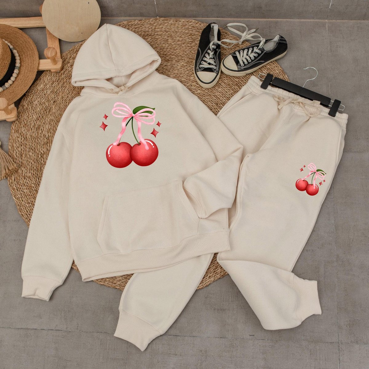 Cherry Bow Hoodie Red cherry and bow Oversized Minimalist Pullover Girly Social Club Trendy Pink Bow