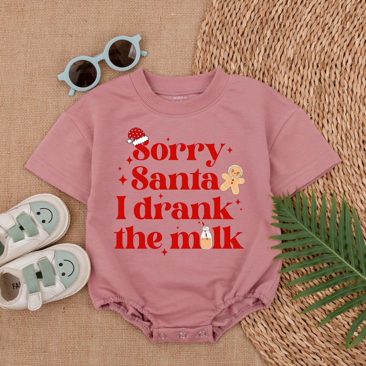 Sorry Santa I Drank The Milk Baby Romper Baby Cozy Clothes Christmas Bodysuit Short Sleeve Oversized