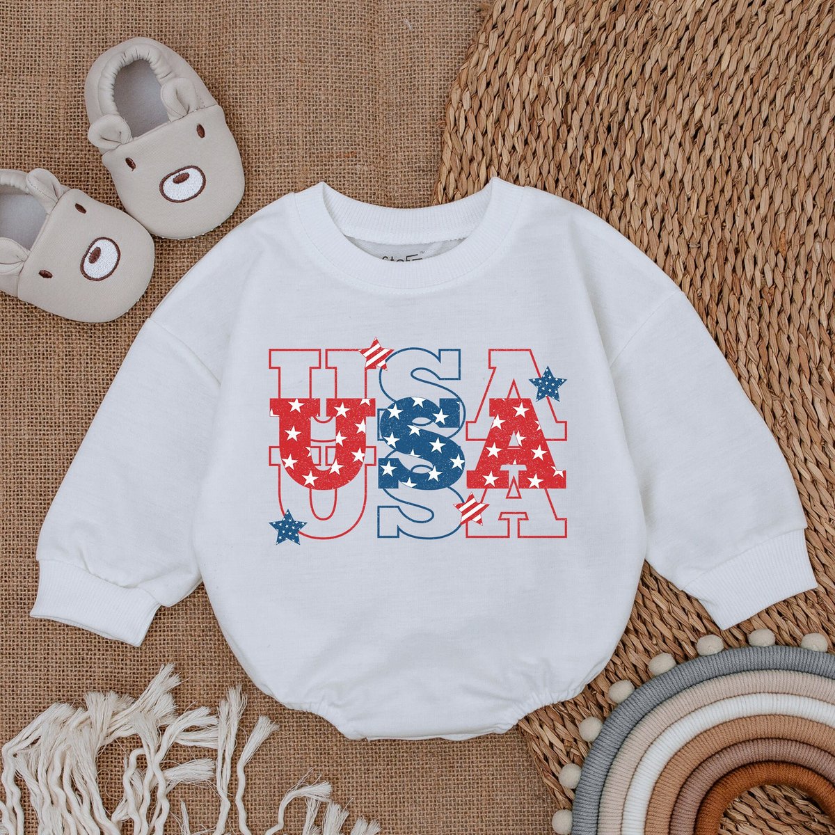Retro USA 4th of July Baby Clothes Patriotic Baby Outfit Bubble Romper Baby Clothes Baby Romper