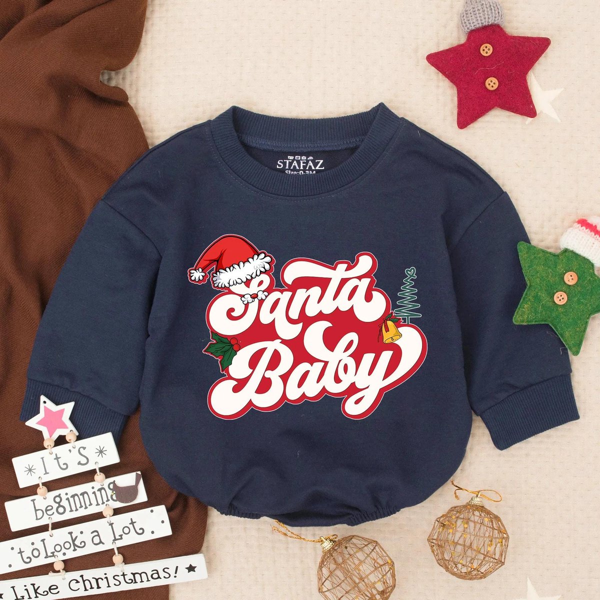 Santa Baby Christmas Romper Holiday Infant Outfit Baby Girl or Boy Bodysuit Toddler Xmas Clothes Win