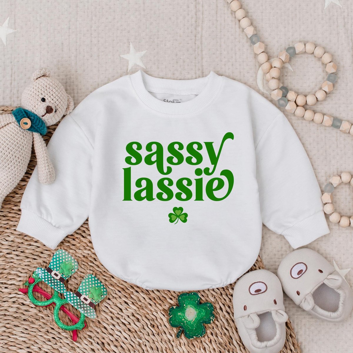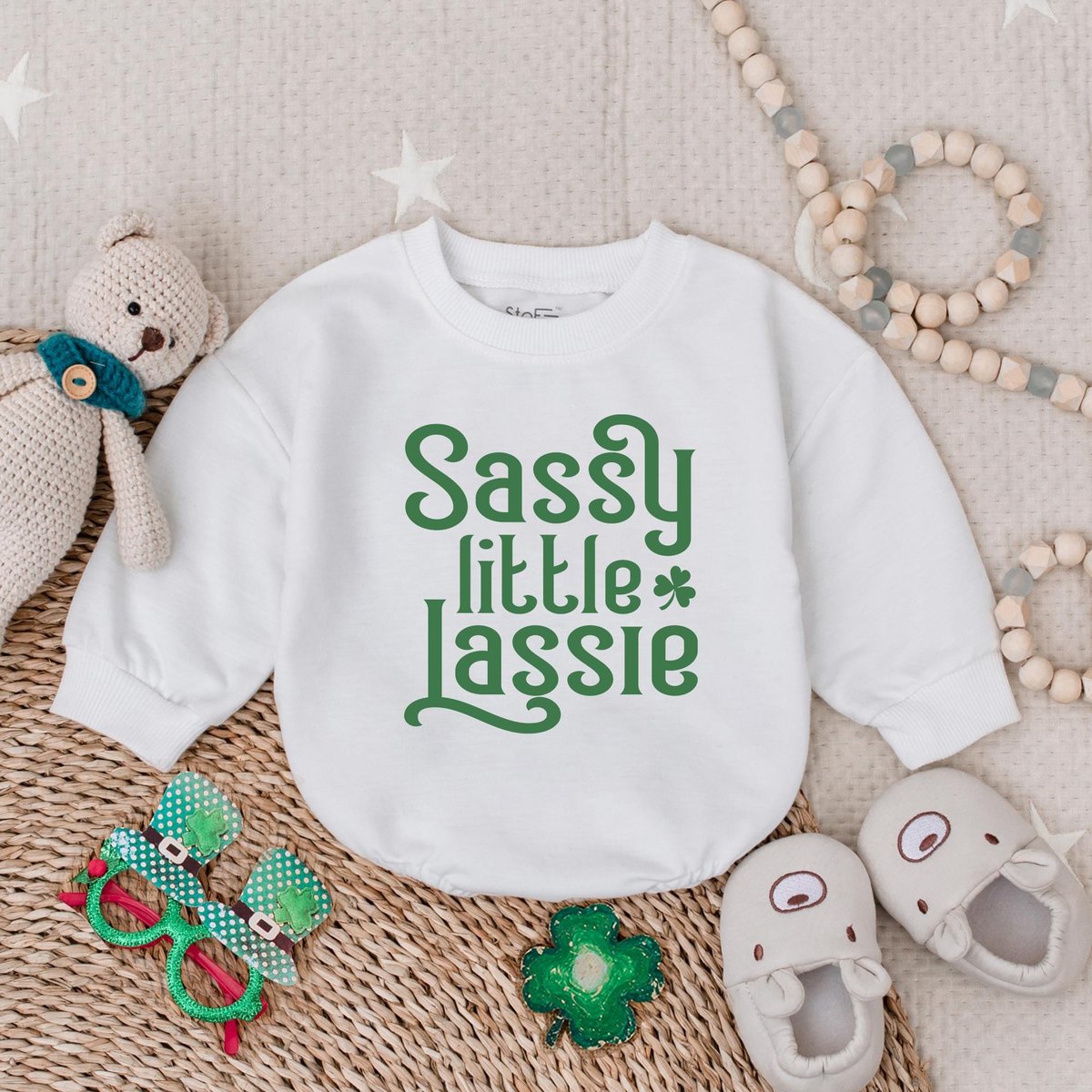 Sassy Little Lassie Baby Romper St Patrick’s Day Bodysuit Irish Baby Outfit Light Mauve Baby