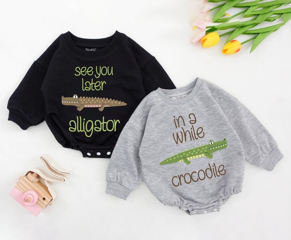 See You Later Alligator In A While Crocodile Twin Romper BodysuitToddler SweatshirtBaby Romper Bubb