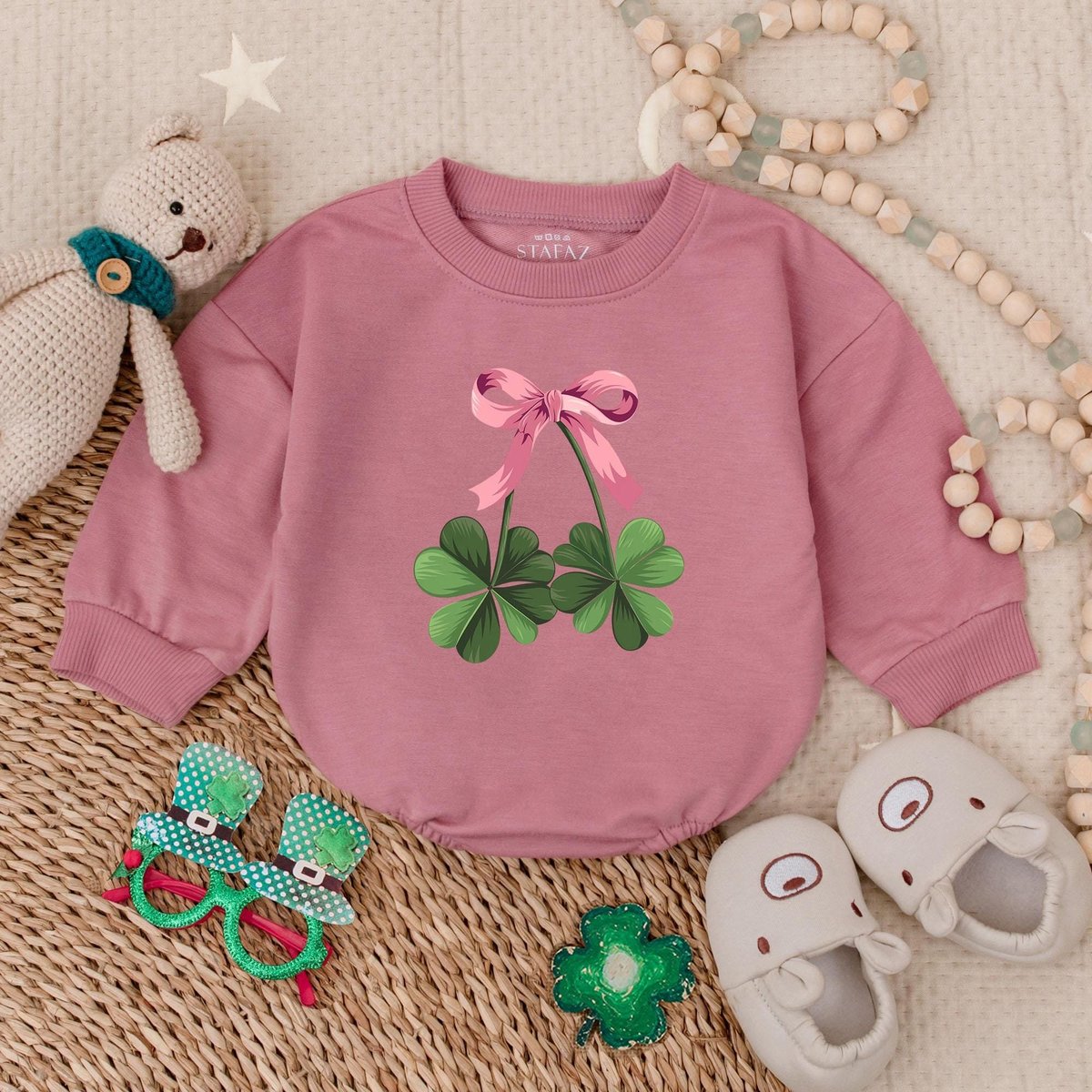 Shamrock Bow Patrick’s Day Baby Romper Lucky Shamrock Clothes St Patrick’s Day Bodysuit Clover