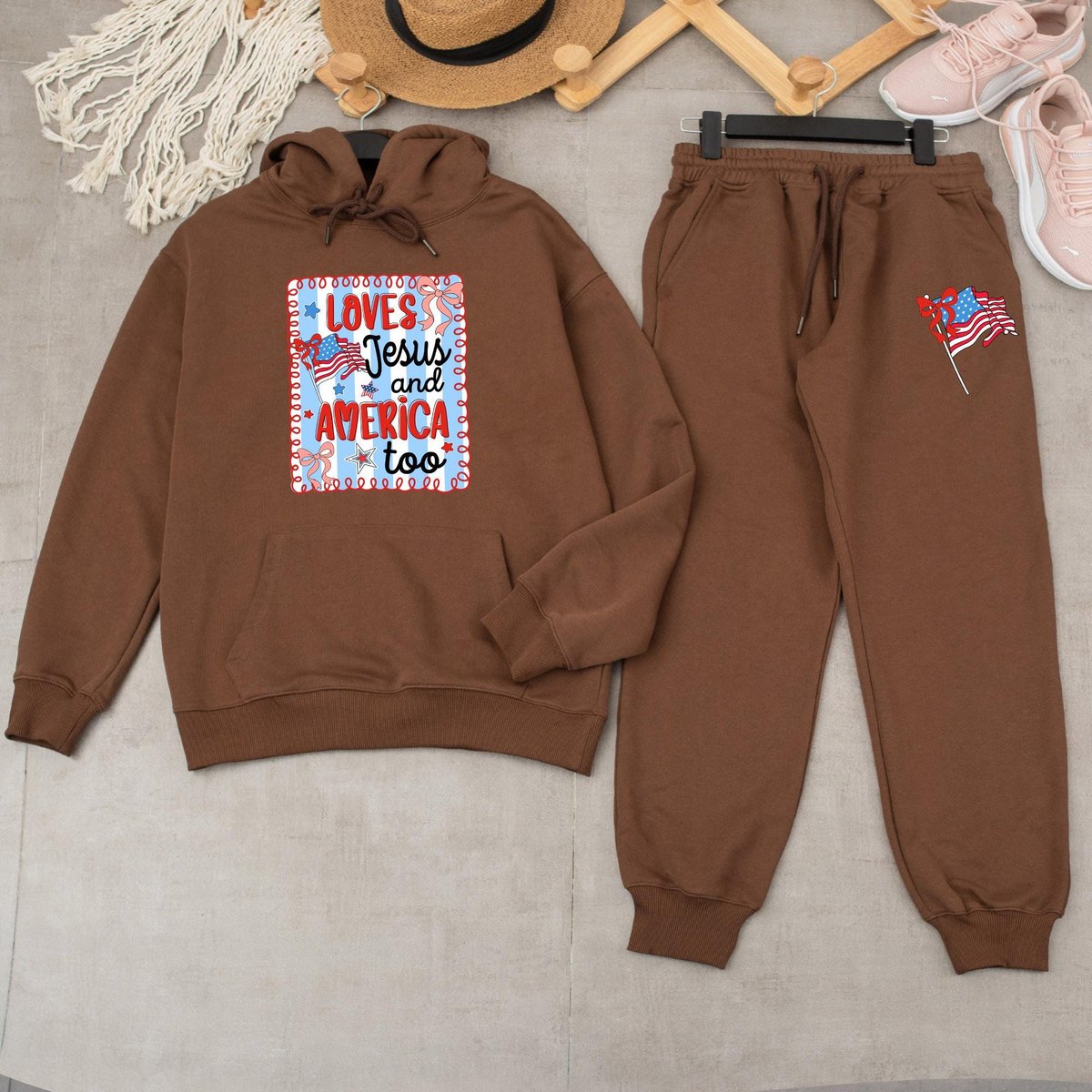 She Loves Jesus and America Too Sweatshirt and Sweatpants Sweatsuit Gift for Mom Girly American Red