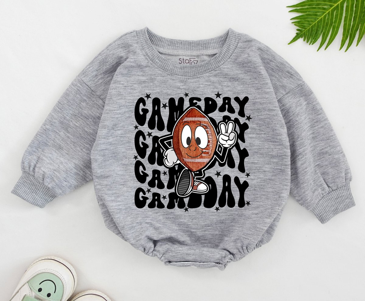 Retro Football Romper Oversized Baby Romper Game Day Toddler Shirt Cute Natural Kids Bodysuit T