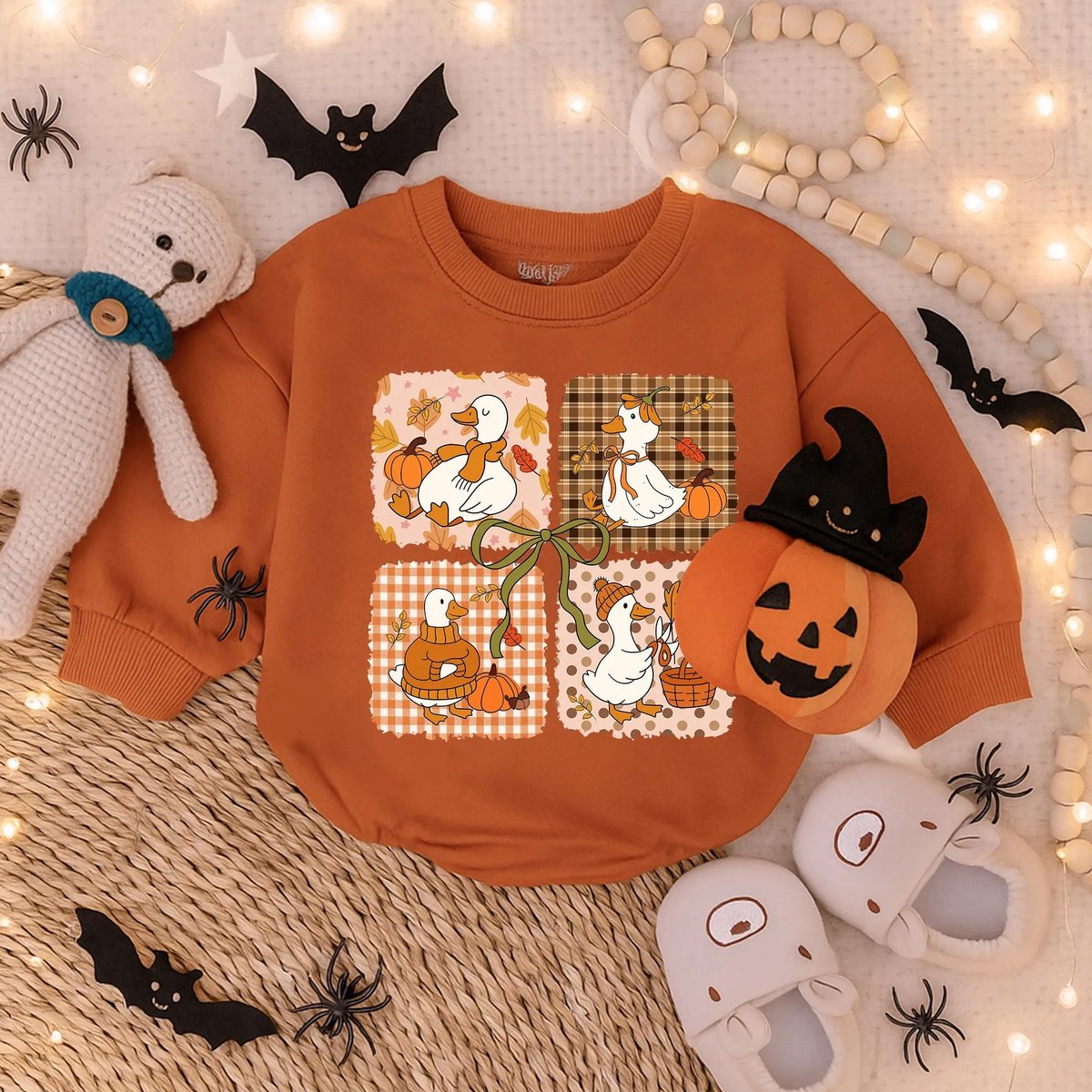 Pumpkin Spice Goose Sweatshirt Bubble Romper Fall Baby Outfit Autumn Leaves Latte Baby Girl Clothes