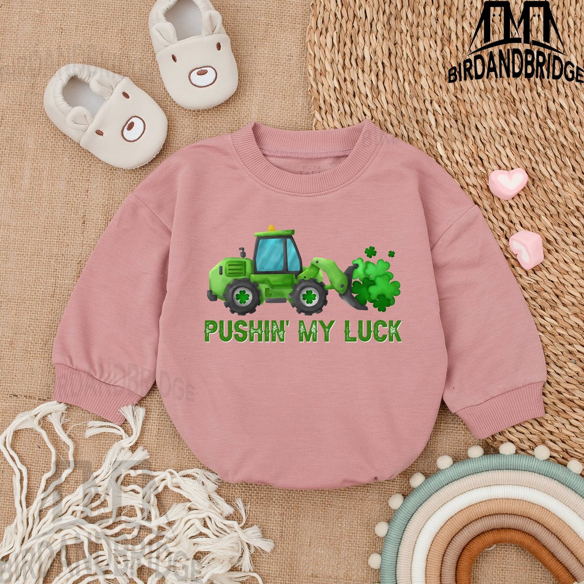 Pushin My Luck Baby Romper St Patrick’s Day Bodysuit Irish Baby Outfit Light Mauve Baby Romp