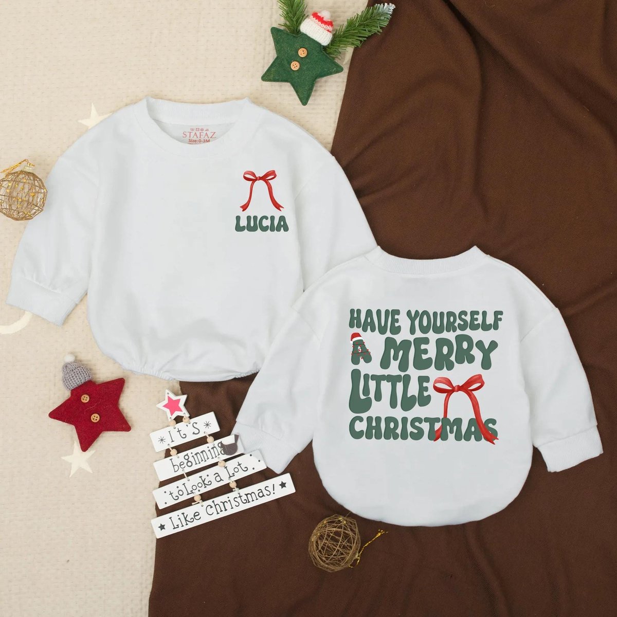 Personalized Merry Little Christmas Baby Bubble Romper Christmas Tree Baby Romper First Christmas To