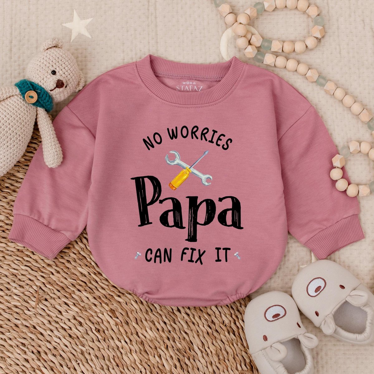 No Worries Papa Can Fix It Bubble Romper Funny Baby Outfit For Dad Father’s Day Baby Romper Handy P