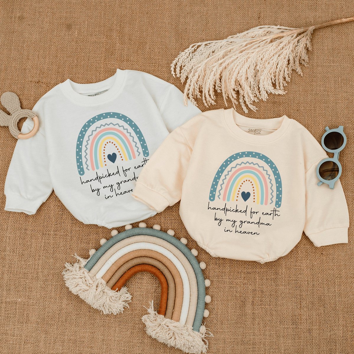 Hand Picked for Earth by my Grandma in Heaven Romper Baby Shower Gift Baby Romper Baby Announcement 159