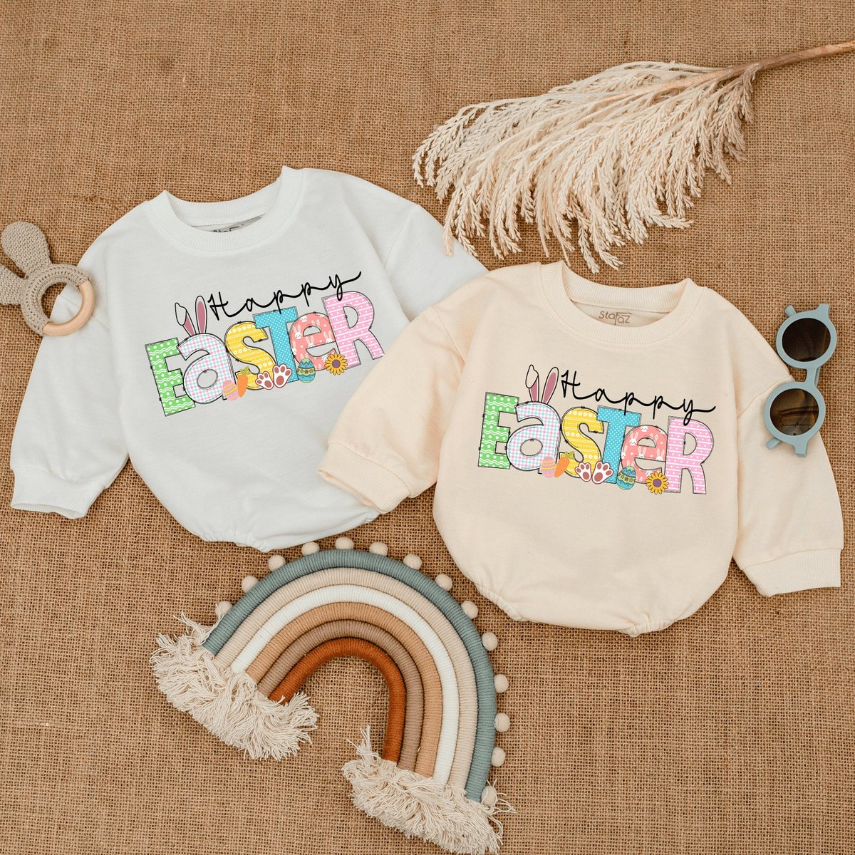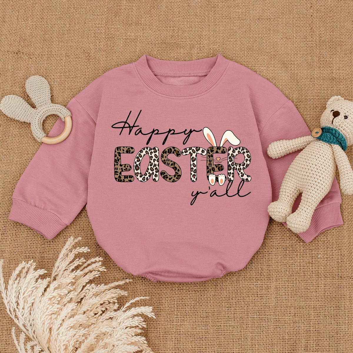 Happy Easter Y’all Romper Easter Baby Outfit First Easter Shirt Easter Retro Bodysuit Sweatshirt Ro 164