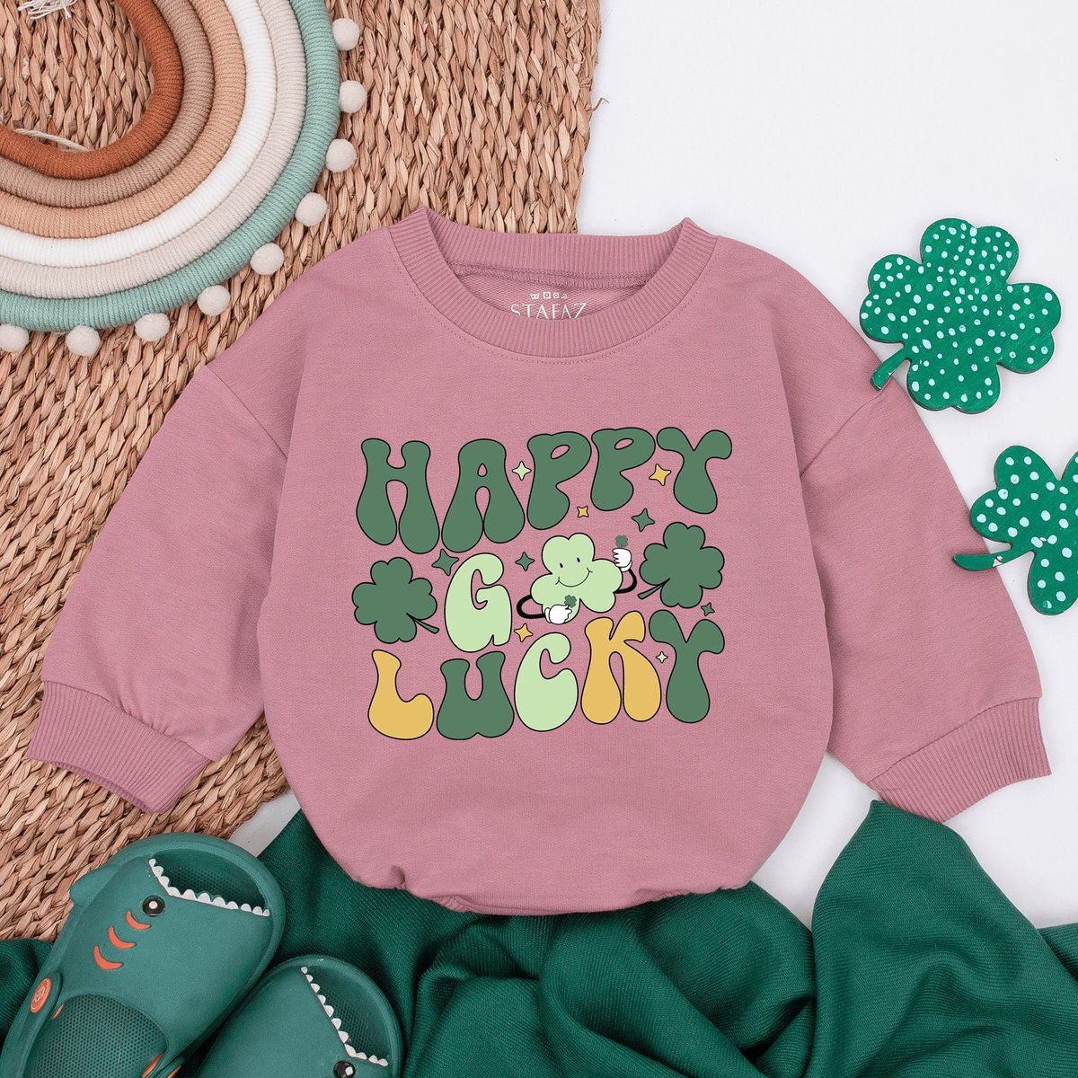 Happy Go Lucky Romper Kid St.Patricks day baby Outfit Kids Saint Patrick’s Day Baby Newborn Gift In 165