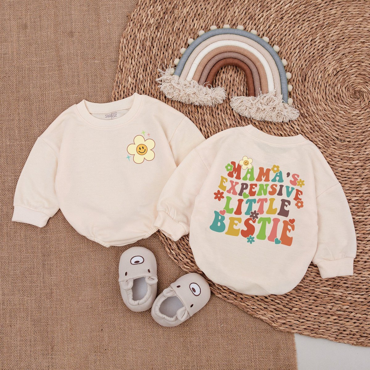 Mama’s Expensive Little Bestie Bodysuit Cute Retro Romper Mom’s Bestie Oversized Romper Ma