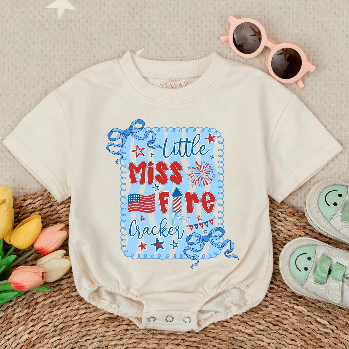 Little Miss Firecracker Baby Bubble Romper 4th of July Baby Clothes Toddler Independence Day Outfit