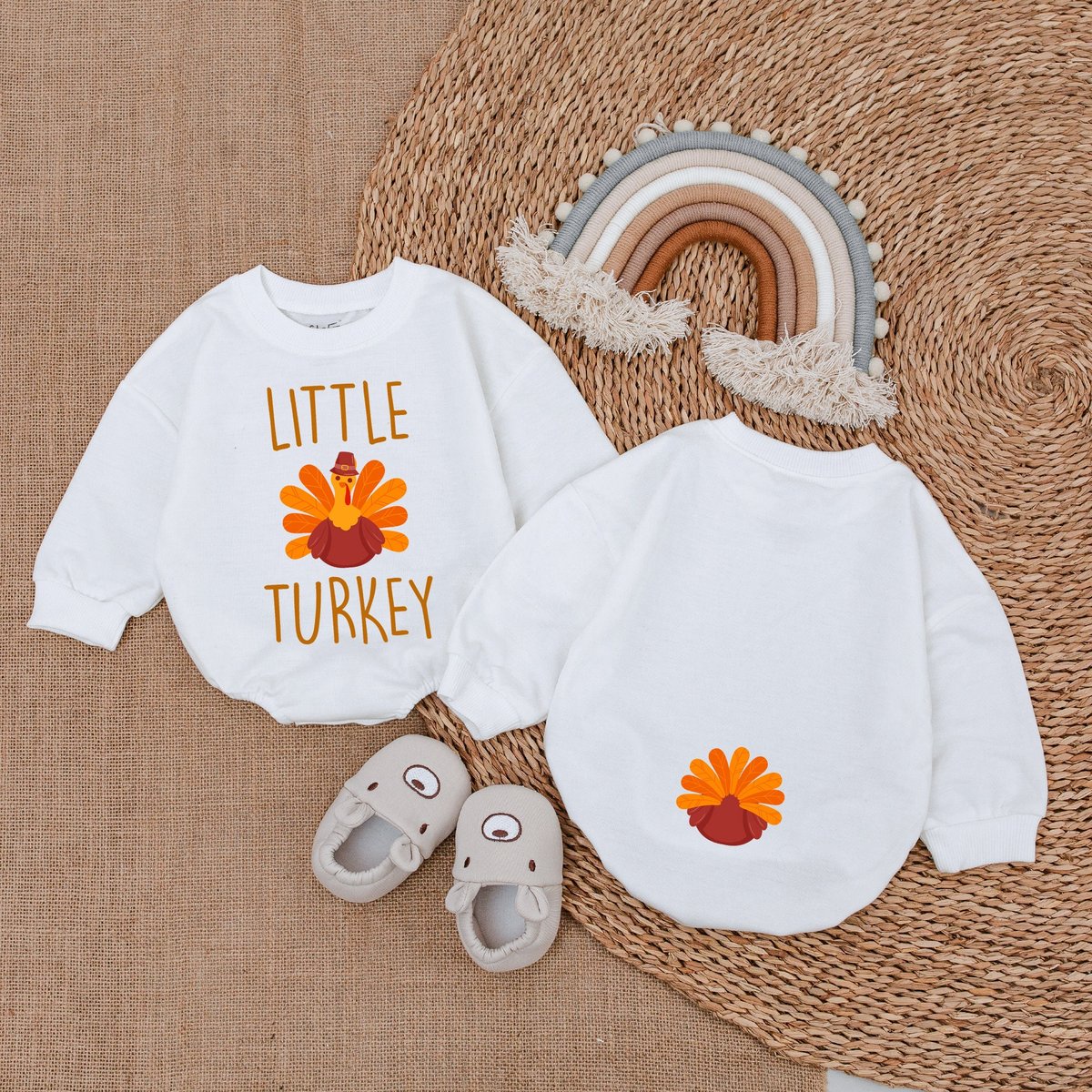Little Turkey Romper Thanksgiving Infant Outfit Thanksgiving Gender Reveal Fall baby Shower Fir