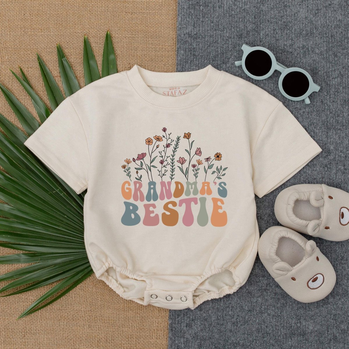 Grandmas Bestie Bubble Romper Floral Wildflower Baby Outfit Retro Baby Gift from Grandma Grandmas Fa 188