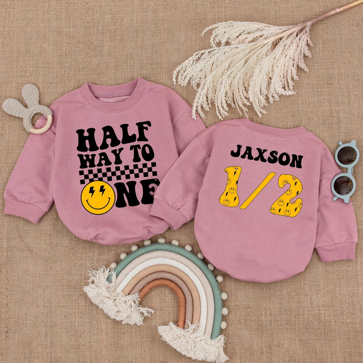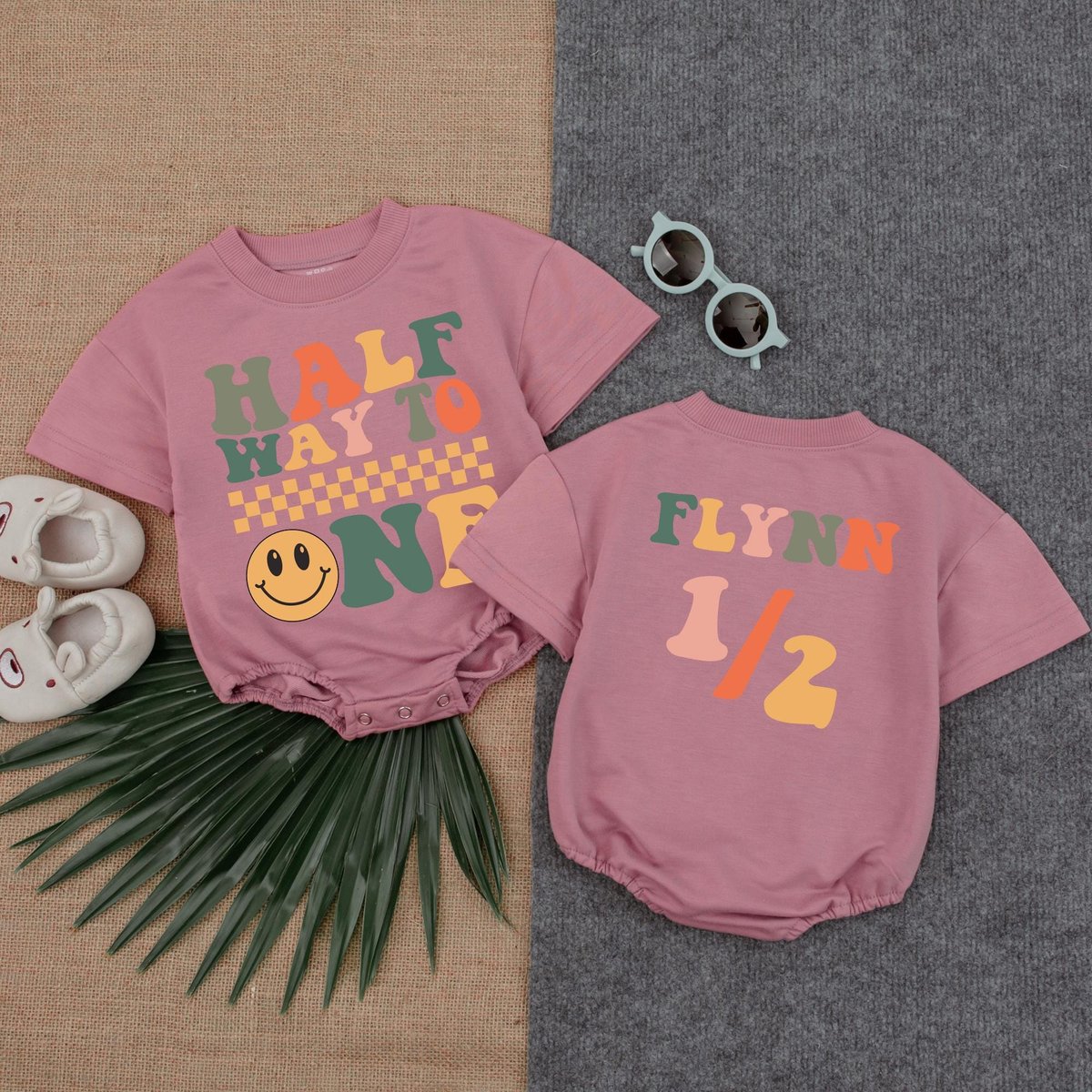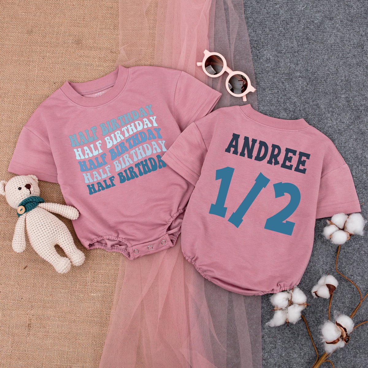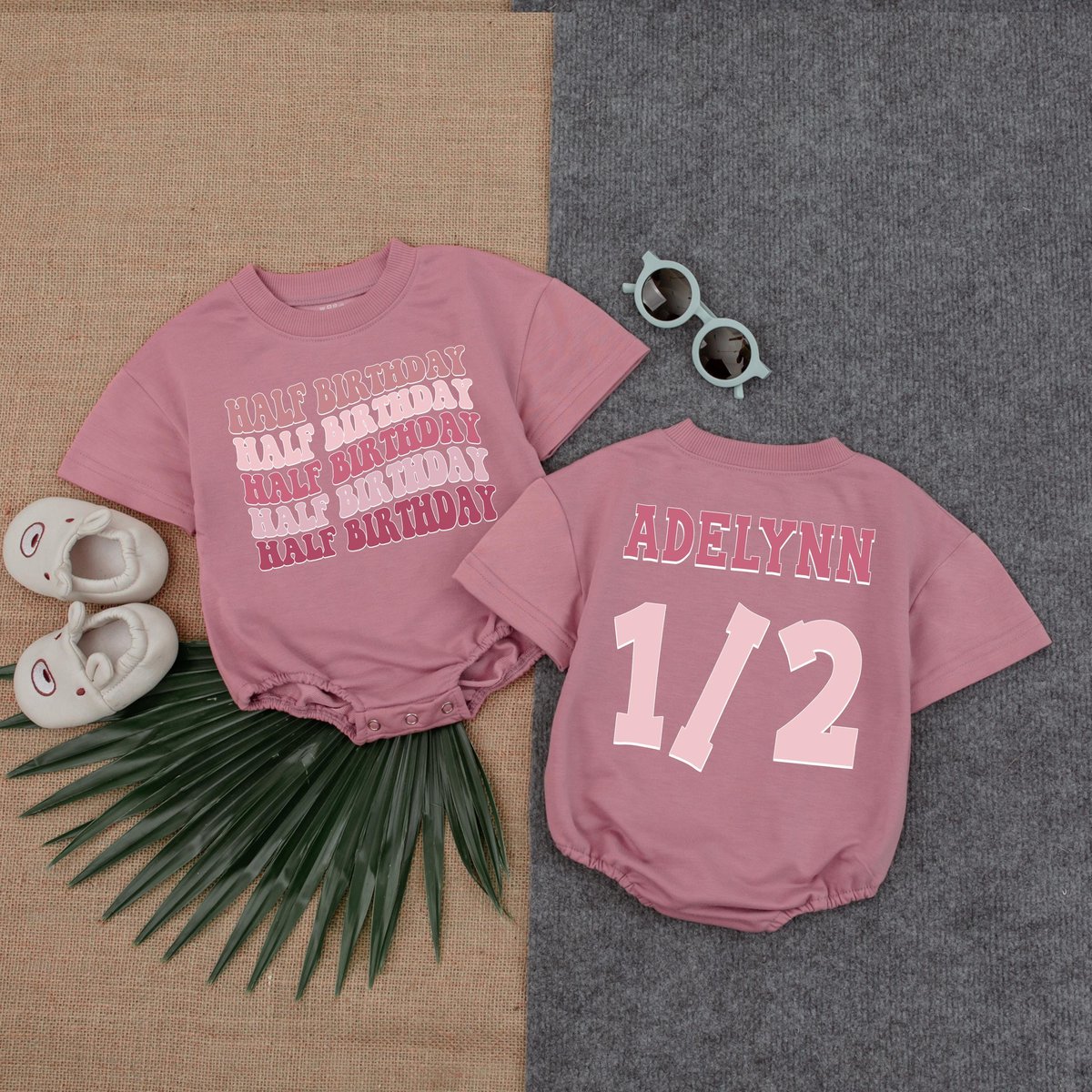 Half Birthday Baby T shirt Bubble Romper with Custom Name 6 Month Bodysuit Halfway to One Outfit 12 190