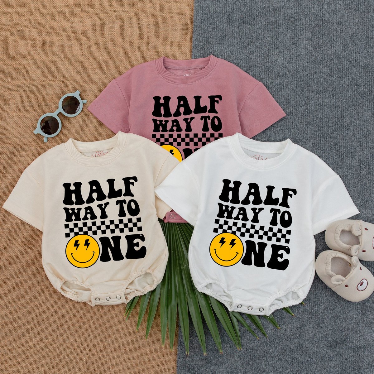 Half Birthday Bubble Romper Halfway To One Romper Short Sleeve 12 Birthday Outfit Six Month Birthd 176
