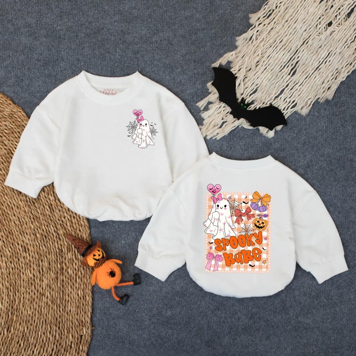 Halloween Ghost Bubble Romper Spooky Babe Baby Girl Outfit Boho Pumpkin Bow Floral Newborn Bodysuit 432