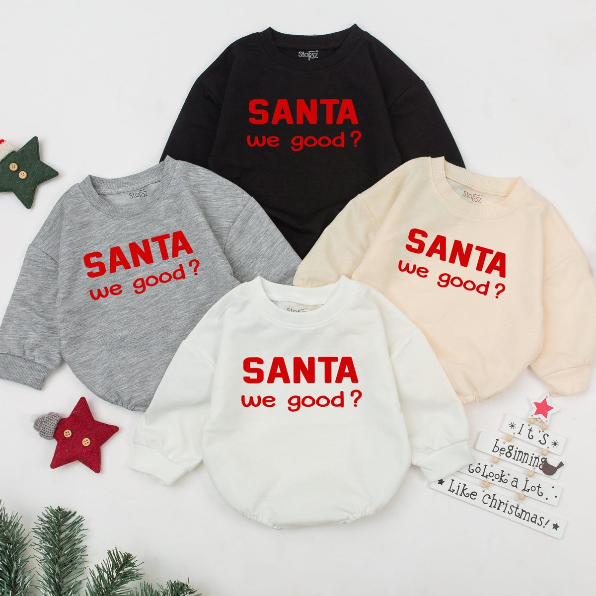 Christmas baby Outfit Santa We Good Baby Romper soft cozy warm Boy Christmas baby girl Retro Santa C 160