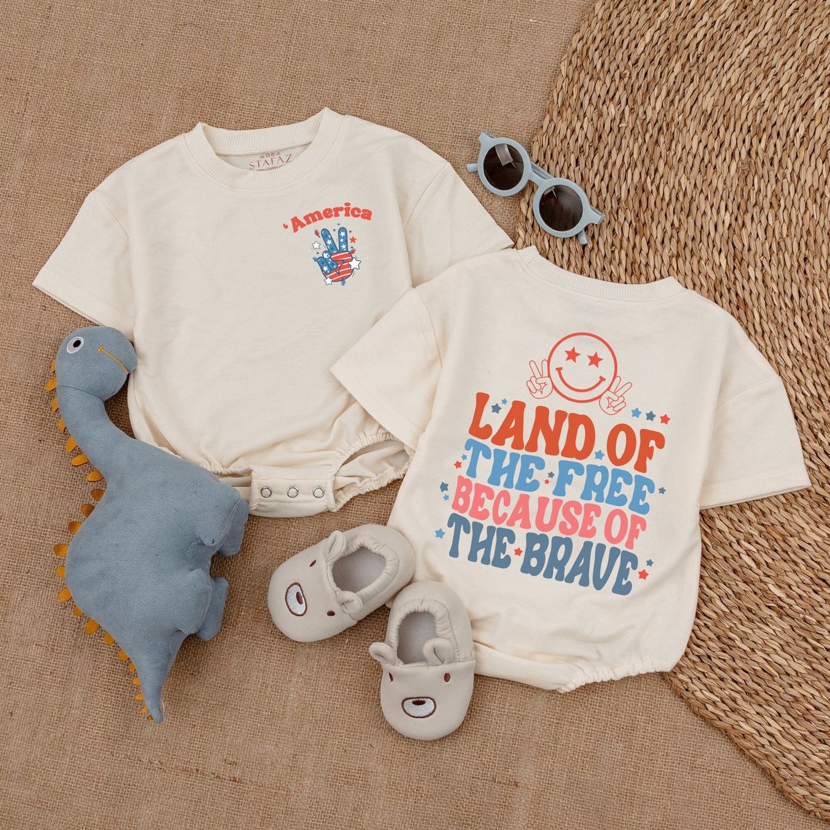 Land Of The Free Because Of The Brave Bubble Romper Retro 4th of July Baby Boy Clothes Patriotic Bo