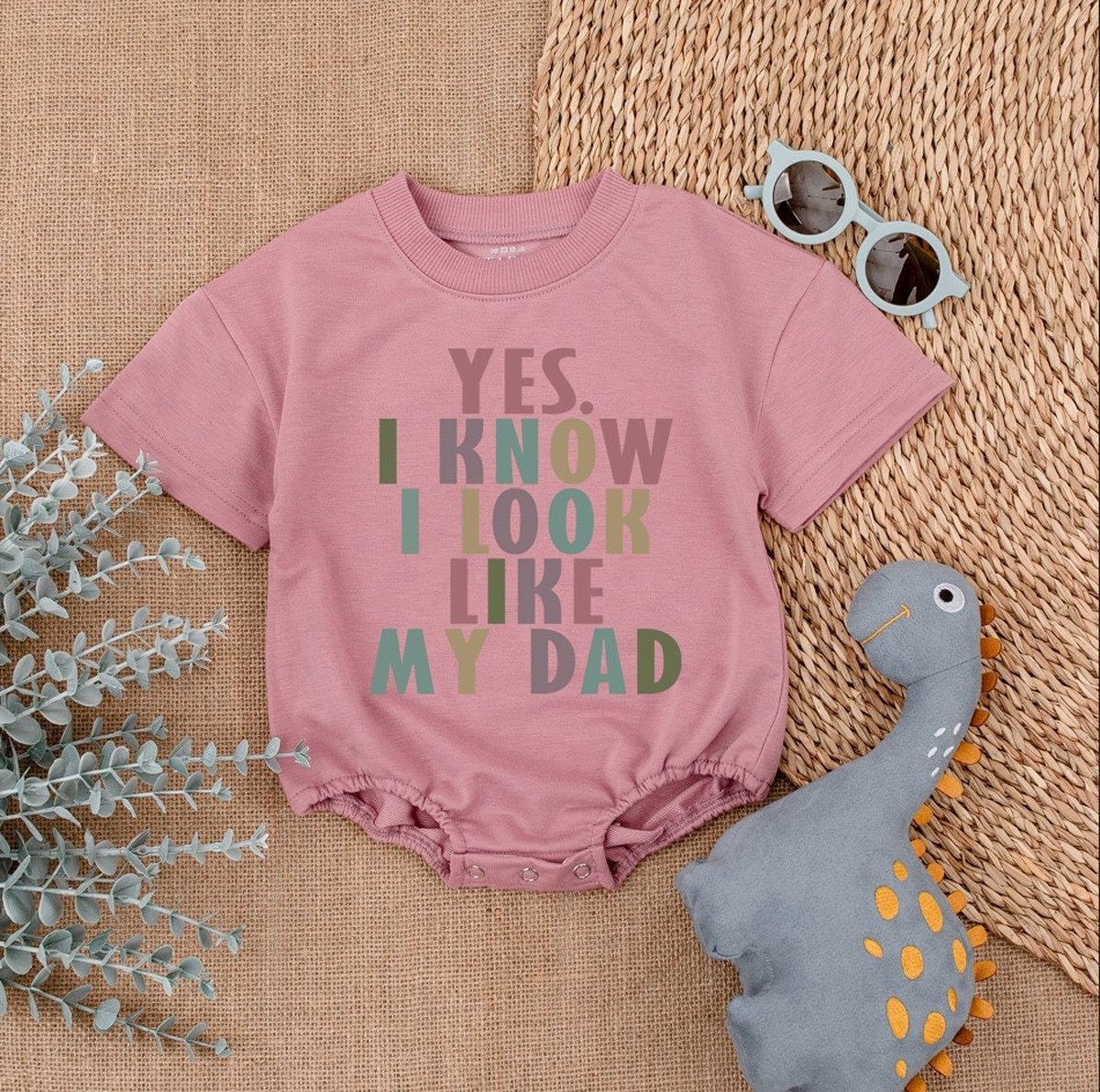 I know I look like my dad Baby Short Sleeve Bubble Romper Baby Outfit Father’s day Baby bodysuit