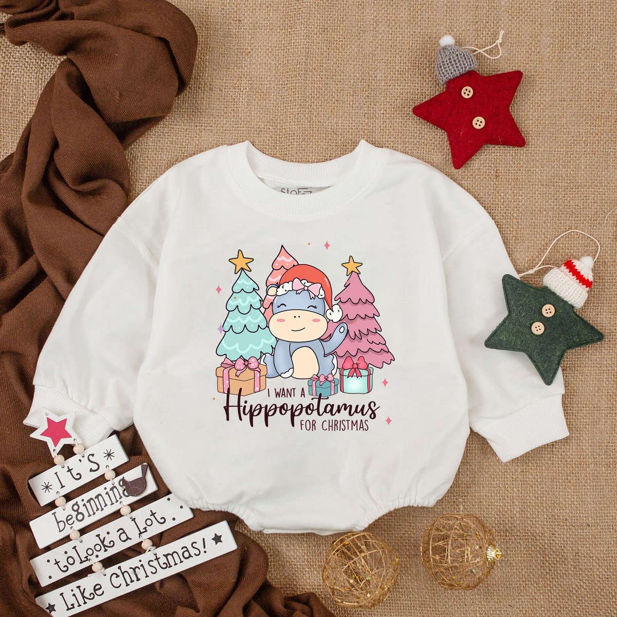 I Want a Hippopotamus for Christmas Romper Bubble Romper Christmas Baby Girl Outfit Christmas baby o
