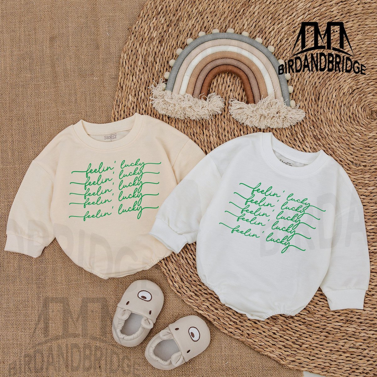 Feelin’ Lucky Baby Romper St Patrick’s Day Bodysuit Natural Irish Baby Outfit Light Mauve Ba
