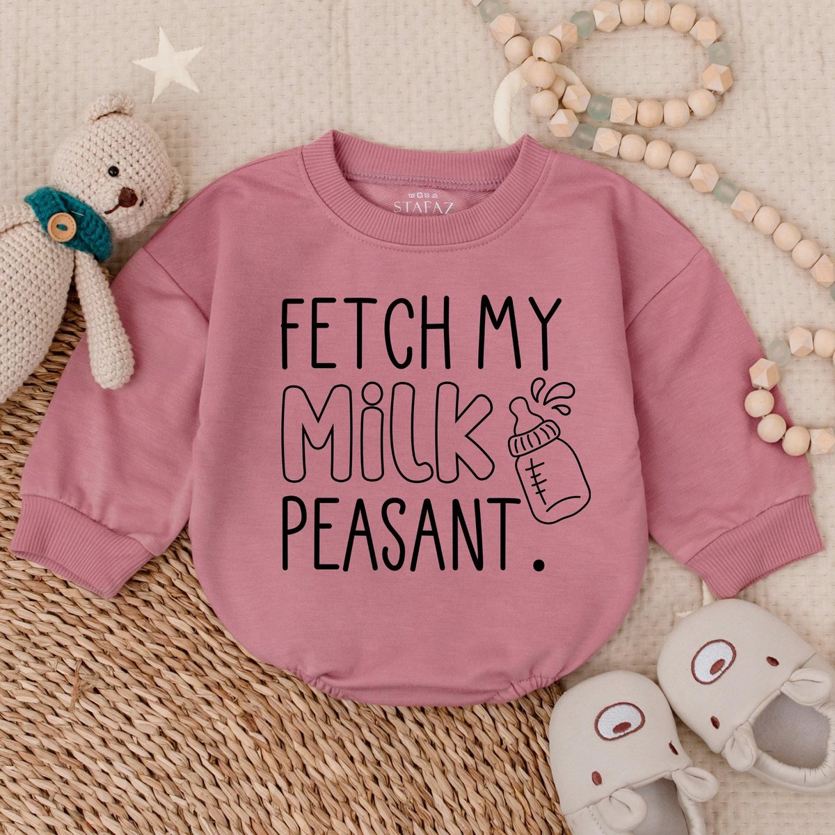 Fetch My Milk Peasant Baby Bubble Romper Funny Milk Baby Gift for Baby Bodysuit for Newborn Cute