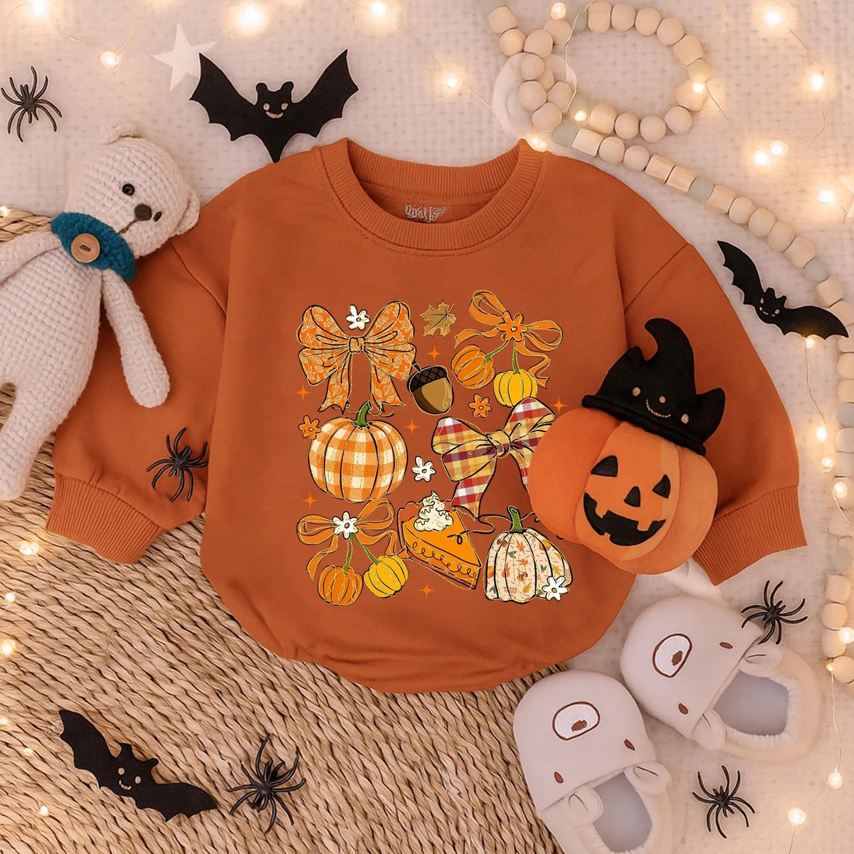 Fall Thanksgiving Pumpkin Bow Glitter Bubble Romper Cute Baby Girl Outfit Autumn Infant Oversized Bo
