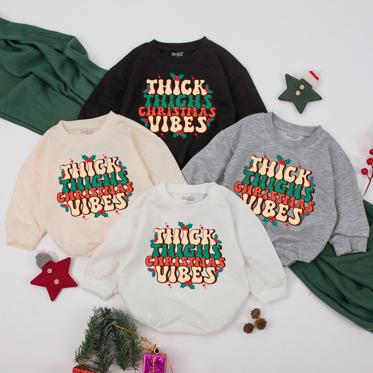 Funny Christmas Baby Romper Thick Thighs Christmas Vibes 1st Christmas Merry Christmas Vibes Baby Sh 156