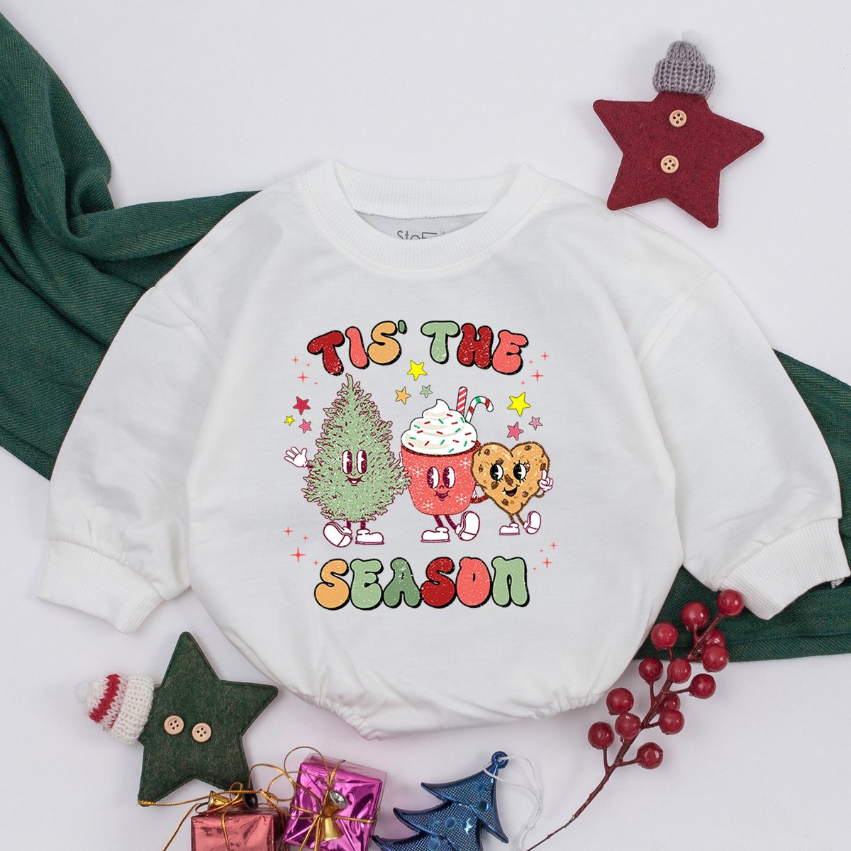 Funny Christmas Baby Romper Tis The Season Milk and Cookies 1st Christmas Merry Christmas Vibes Baby 156