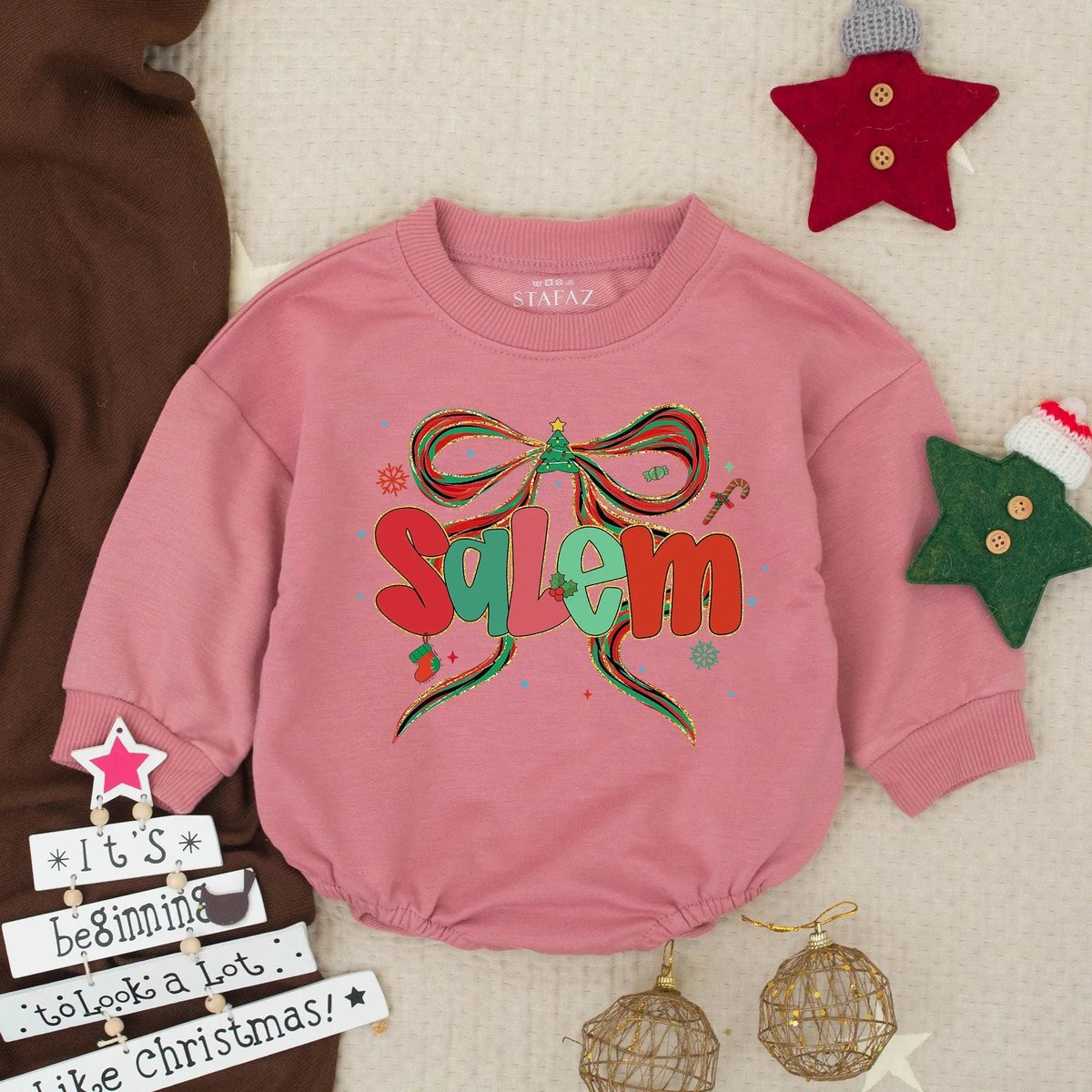 Customized Name Baby Girl Christmas Bubble Romper Red Bow Glitter Bodysuit Holiday Baby Outfit Chris