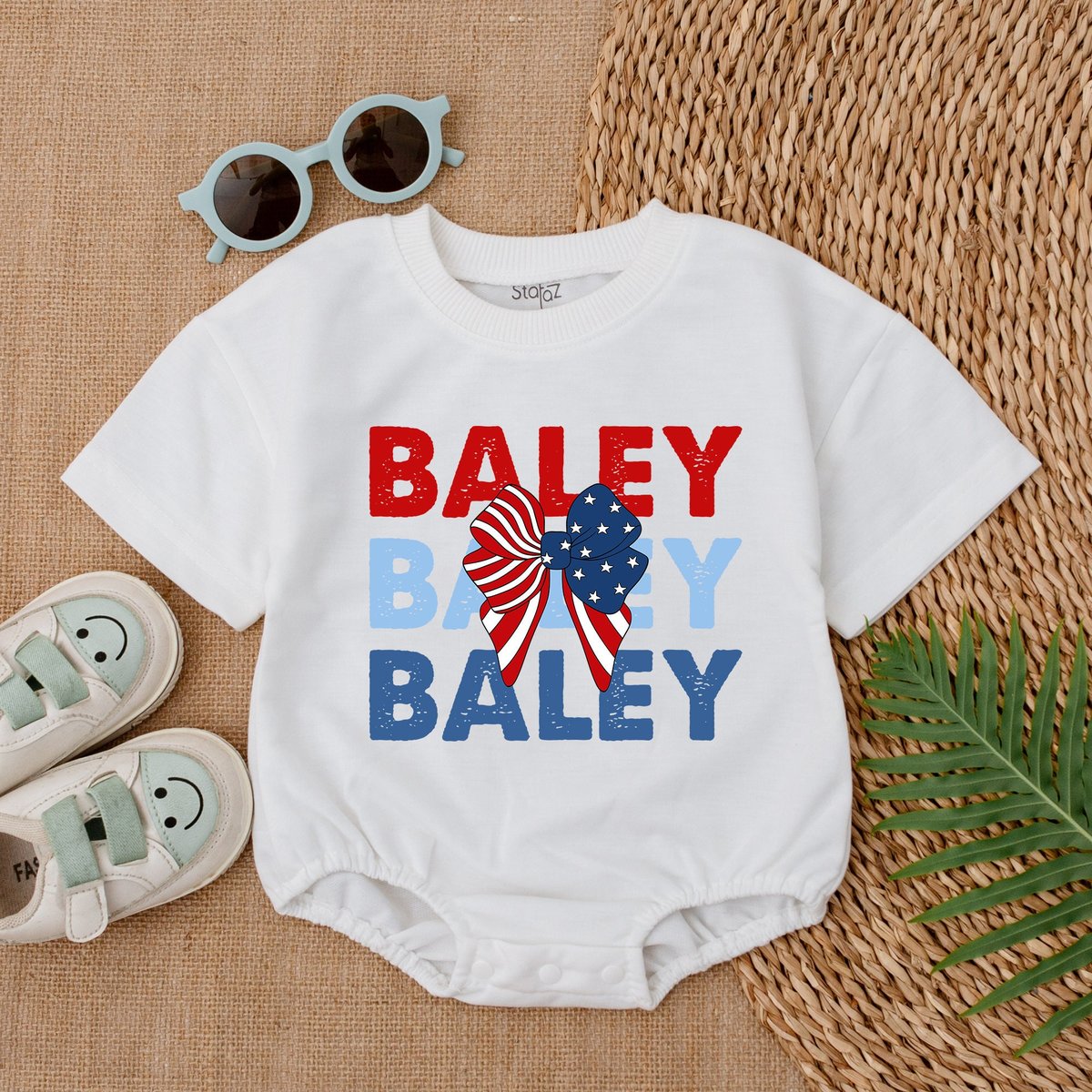 Customized Name Romper Retro 4th of July Baby Clothes Patriotic Baby Outfit Baby Clothes Baby Rom