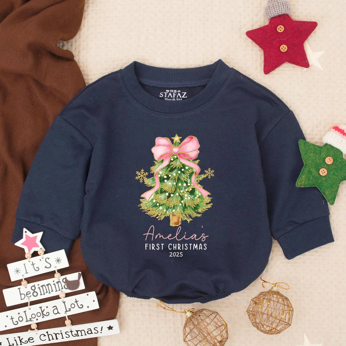 Customized Preppy My First Christmas Baby Romper Girly Christmas Baby Romper Christmas Bow Baby Body