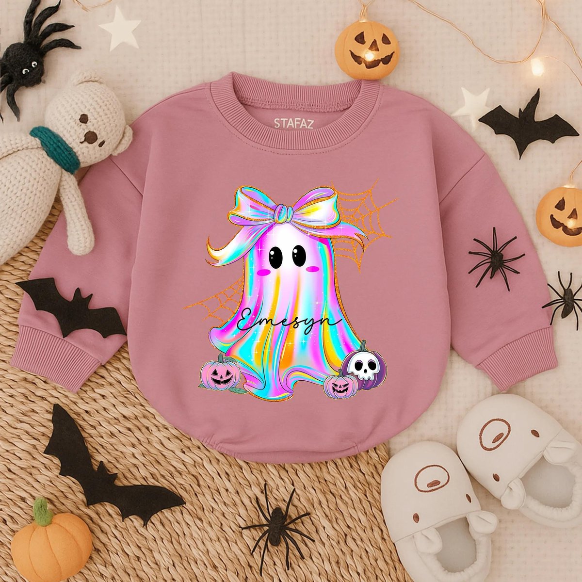 Customized Iridescent Ghost Pumpkin Romper Girly First Halloween Baby Outfit Cute Spooky Fall Bodysu