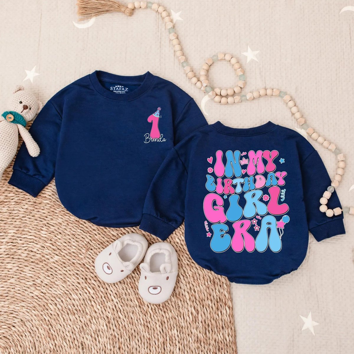 Custom In My Birthday Girl Era Bubble Romper Personalized 1st Birthday Outfit Baby Girl Smash Cake