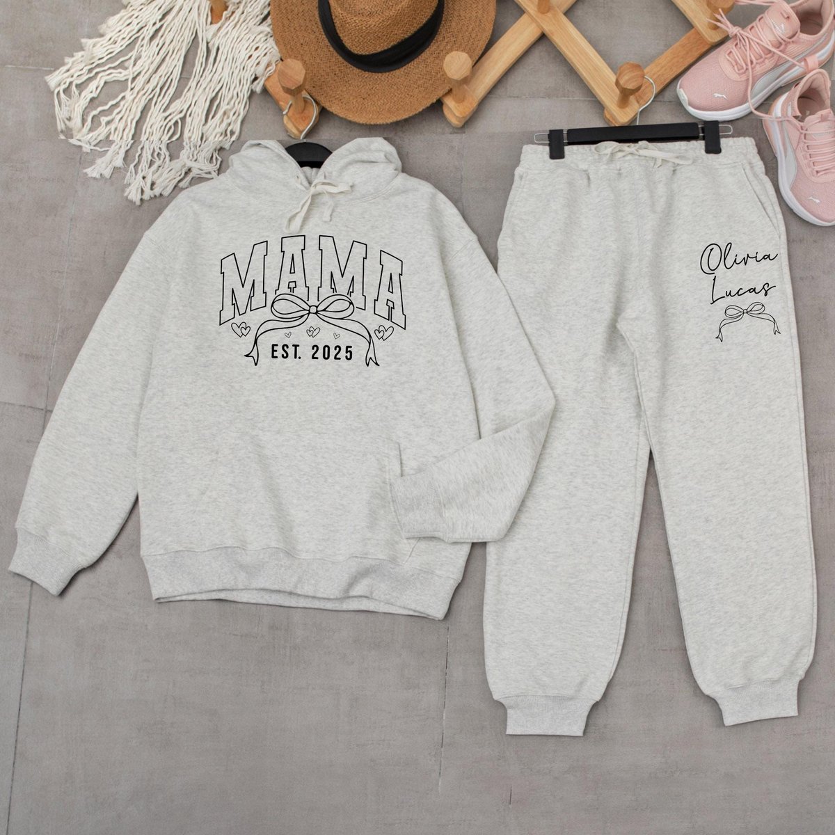 Custom Mama Sweatshirt and Sweatpants Sweatsuit Gift for Mom Personalized Mama Sweater with Children