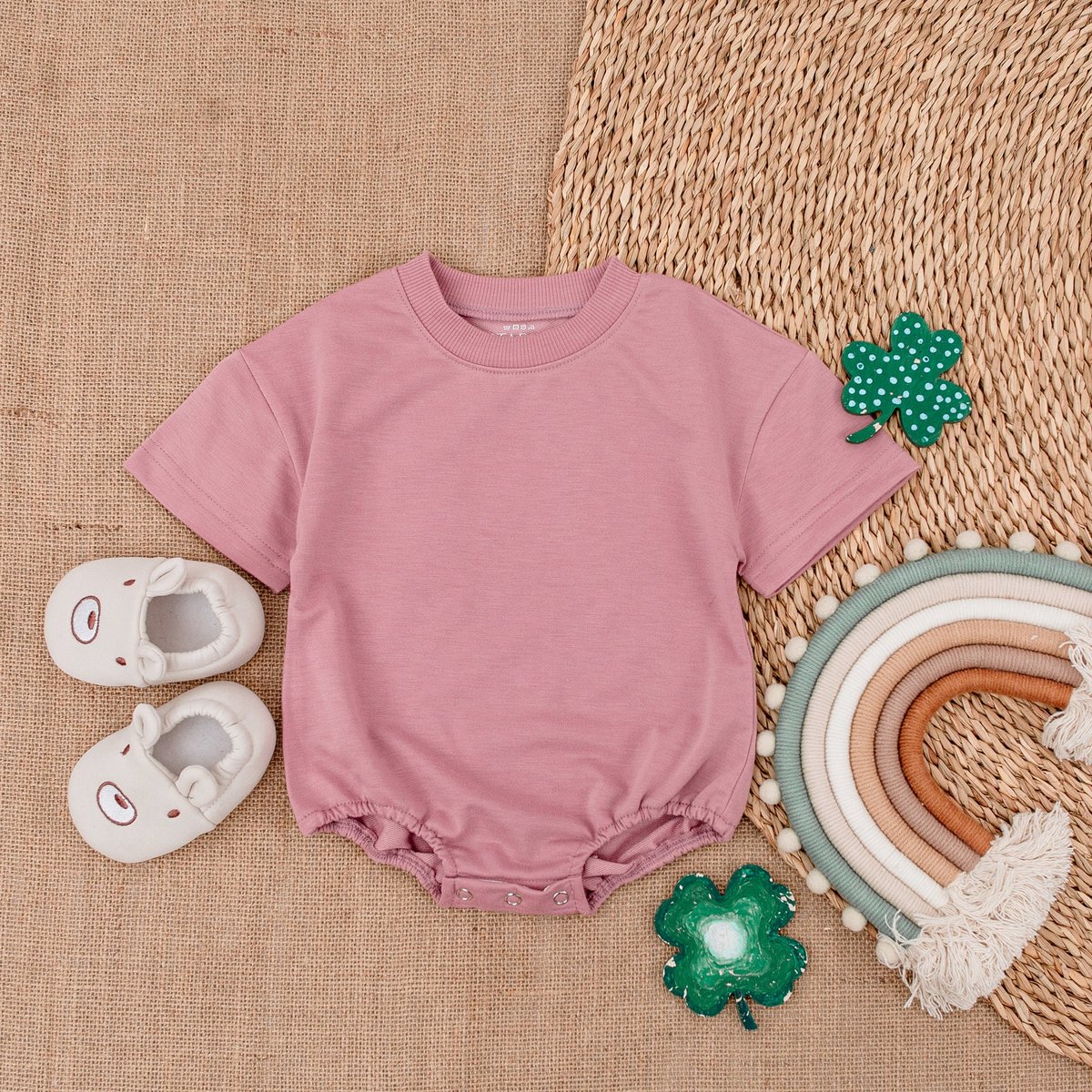 Custom Design Short Sleeve Bubble Romper Baby Outfit Light Mauve Baby Romper Baby bodysuit New