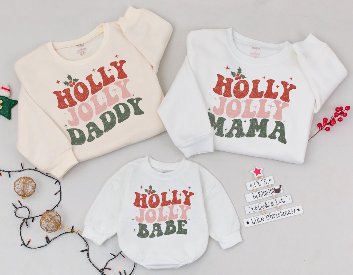 Christmas Matching Family Sweatshirt Holly Jolly dude Mommy and me outfit Funny Christmas 2024 Famil 180